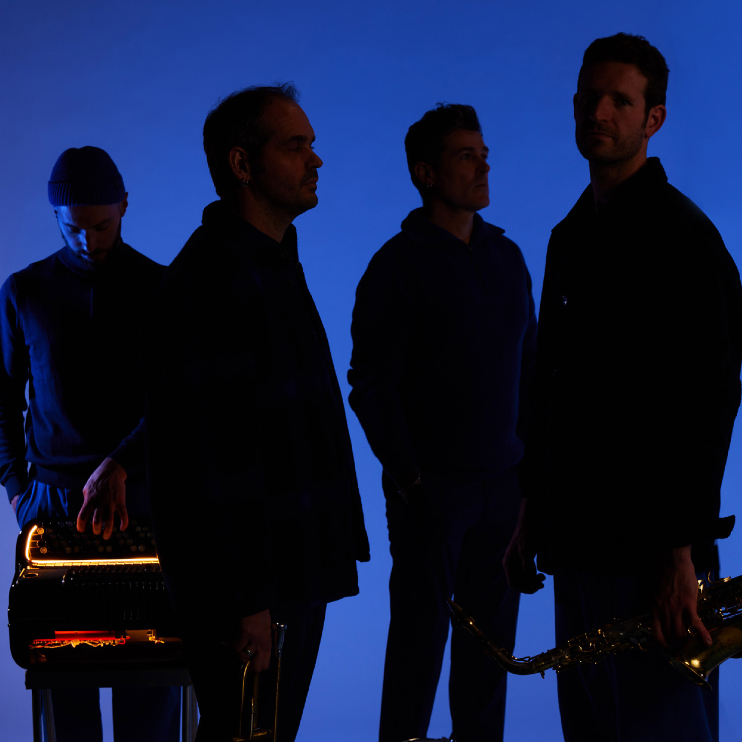 Rendez-vous à la brune, à l’heure où le soir tombe dans des couleurs acidulées, à l’heure où la musique de ‘Ndiaz nous fait danser, à l’heure où la fête peut commencer. La Brune, c’est aussi le titre de leur nouvel album, comme une invitation à se laisser aller, à faire un pas de côté. Il faut dire que la bande des quatre n’y va pas avec le dos de la spanell pour nous faire entrer dans la transe. Leur musique toute de cuivres vêtue et d’effets apprêtés, hybride les influences pour nous faire voyager bien au-delà du Breizh ma Bro. Youn Kamm à la trompette, Timothée Le Bour au saxophone, Jérôme Kerihuel à la batterie, Yann Le Corre à l’accordéon et à l’électravox, nous électrisent de leur énergie contagieuse. Nous voilà pris dans les rapides, des fourmis plein les jambes. Alors on danse !
